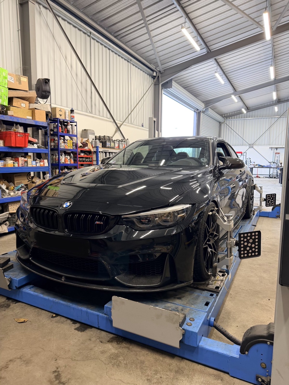 le Garage Michaut vous présente une réalisation d’une géométrie de train roulant avant et train arrière sur une BMW M4 compétition.